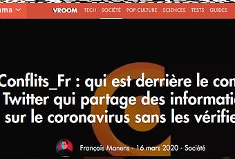 sourceOfficiellement, les administrateurs du compte « traquent les conflits autour du globe en temps réel et en français », privilégiant les sujets politiques et géopolitiques, le terrorisme, l’espionnage ou la santé… mais depuis le début de la crise sanitaire, cette chaîne pourrait se rebaptiser « Coronavirus info ». Animé par trois étudiants, Conflits est en passe de devenir une référence francophone sur le sujet. Plus de 175 000 abonnés y sont déjà abonnés et le nombre ne cesse de croître.