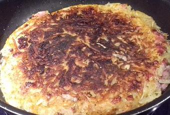 Rösti alsacien: galette de pomme de terre aux oignons et aux lardons