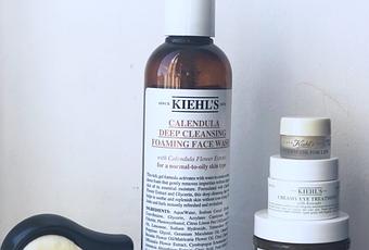 Première étape, le nettoyage de ma peau avec le nettoyant visage au calendula de Kiehl’s. Il nettoie en profondeur sans agresser ma peau (car j’ai une peau assez sensible, donc sujette aux rougeurs). Je l’utilise avec une petite brosse toute douce, j’apprécie ce petit « massage » du visage qui me met de bonne humeur dès le matin. Une fois mon visage propre et sec (on tapote avec la serviette surtout, on ne frotte pas comme une dingue sinon, gare au visage tout rouge). Ensuite, j’applique le contour des yeux à l’avocat de Kiehl’s, un soin contour des yeux hyper onctueux, mais pas gras du tout. Idéal pour nourrir cette partie de mon visage qui en a besoin. Pour mon visage, j’ai choisi la crème au calendula de Kiehl’s. Depuis que je l’ai testé, je ne jure plus que par elle ! Pourquoi ? Parce qu’elle est agréable (fraîche et laisse la peau vraiment douce), et elle sent tellement bon !! Et puis, je vois vraiment la différence depuis que je l’utilise, ma peau est beaucoup plus éclatante. J’applique enfin mon masque pour les lèvres, de Kiehl’s encore une fois. Moi qui ai les lèvres toujours gercées, c’est devenu mon produit indispensable pour prendre soin d’elles.