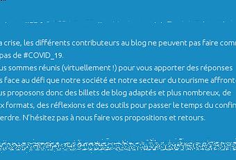 - Commercialisation locale : Comme cela a été très bien évoqué dans l'article de Cédric " Gestion et de sortie de crise : analyse et regards croisés de 7 destinations ", l'été sera sans aucun doute local. " Comment tandis que plus de 50 % de ma clientèle était étrangère voire hors-européenne me retourner vers une commercialisation locale ? ", " Comment puis-je améliorer mes synergies sur une échelle locale ? ", etc. ;