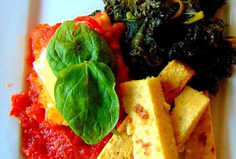 C'était servi avec du kale à l'ail et des frites de fèves jaunes. Une belle découverte ces "frites".