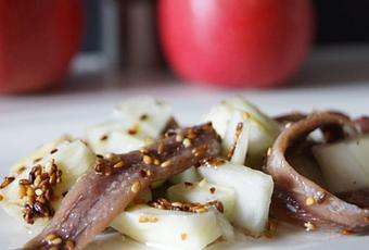 Salade de fenouil, pommes, anchois et graines de sésame. Une entrée fraîche, simple, rapide et économique.