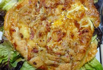 Faire griller les lardons avec l'oignon émincé, ajouter les coquillettes cuites, la crème fraîche et les morceaux de camemberts, saler et poivrer.