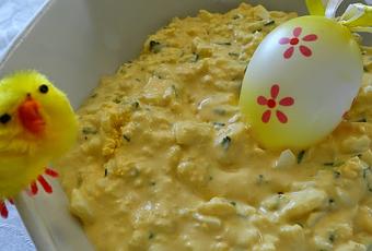Dans un saladier mélanger la crème fraîche, la mayonnaise, la ciboulette, le persil et la moutarde