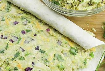 Puis étalez votre mélange au centre des tortillas, roulez-les et placez-les au frigo pour 30 minutes.