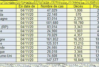Bien sûr, les chiffres sont aussi fiables que la façon dont les ministères de la santé des gouvernements les collectent, mais ceux-ci restent cependant tres révélateurs.Je me suis surpris d’observer que la Turquie semble bien réussir à limiter ses pertes, un peu moins au Canada grâce à son bon système de santé publique.