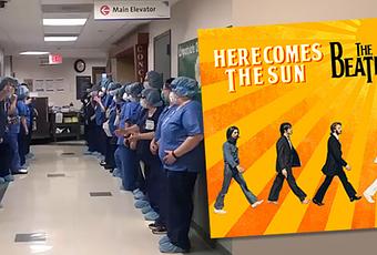 Au sein de l'hôpital Northern Westchester de Mount Kisco (New York), chaque fois qu'un patient hospitalisé pour le virus COVID-19, il reçoit un petit cadeau à son départ. Une partie des soignants se réunissent dans les couloirs pour applaudir le patient. Au même moment, la chanson classique des Beatles " Here Comes the Sun " (1969) résonne dans le haut-parleur. Un petit hommage au courage du patient et de l'équipe soignante qui ne passe pas inaperçue.