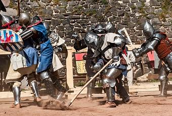 Le béhourd est présenté comme un sport de combat violent dans lequel l'on utilise des armes du Moyen Âge.