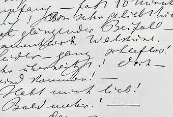 Fac-similé d'une lettre de Richard Wagner publié en 1930 par le Dr Hans Scholz dans le recueil des lettres de Wagner à Mathilde Maier : Richard Wagner an Mathilde Maier (1862-1878), herausgegeben von Dr. Hans Scholz, T. Weicher, 1930.