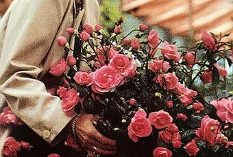 Aus dem Gartenrosenkatalog Rosen Tantau KG 2000/2001. Es zeigt Karin Stoiber, die Ehefrau des damaligen bayrischen Ministerpräsidenten Edmund Stoiber, bei der Taufe der König Ludwig Rose. Alle Rechte zur Veröffentlichung liegen bei Rosen Tantau. Für jede weitere Veröffentlichung, außer der angekündigten, muss um Genehmigung gefragt werden.