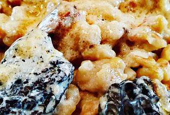 Impossible d'être au taquet pour juillet, donc on reste au chaud, à cuisiner et on se fait plaisir avec de bons plats, de la crème, des morilles ( fraiches ou séchées) et on découvrir la joie de faire des spätzle maison, facile, faites en 5 minutes.
