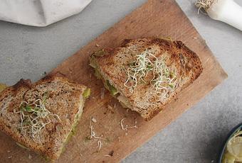 C'est ma sœur qui m'a fait tomber dans l'addiction aux sandwichs grillés il y a quelques années lorsque nous avons fait ensemble un voyage en Grèce (oui, le lien n'est pas évident, mais c'est juste que dans l'appartement où nous étions, il y avait un appareil à croque-monsieur, et qu'apparemment c'est très courant là-bas...). J'étais déjà légèrement addict aux sandwichs mais alors là ! A tel point que j'ai investi dans un de ces appareil à croque-monsieur (bon, pas trop quand même parce que je l'ai acheté d'occasion sur un vide-grenier, et qu'il fait aussi gaufrier, ce qui m'a doublement décidé).Je trouve que les sandwich grillés sont parfaits pour un repas vite prêt et légèrement régressif. J'aime bien aussi m'en faire pour les petits déjeuners (oui, oui). Je vous présente donc ici l'une de mes variantes favorites en ce moment. La plupart des recettes de sandwichs grillés ou de croques (la différence entre les deux n'est pas limpide pour moi) font intervenir du fromage et/ou de la béchamel, pour le côté moelleux. Mais je trouve que si l'on prend bien soin de préparer une garniture bien crémeuse comme ici avec cette fondue de poireaux, ce n'est pas forcément la peine de s'embêter avec ça (vous connaissez ma tendance à la feignantise...). Je fais d'ailleurs une fondue de poireaux de feignasse, inspirée par celle de Végébon (d'ailleurs elle propose elle aussi une idée de sandwich grillé aux épinards et cacahuète qui donne bien envie...).
