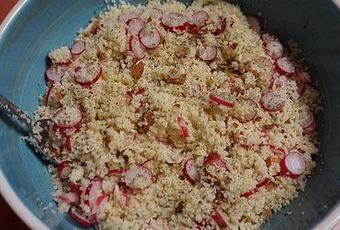 Ajouter le tout à la semoule avec l'huile, le sel et le poivre.