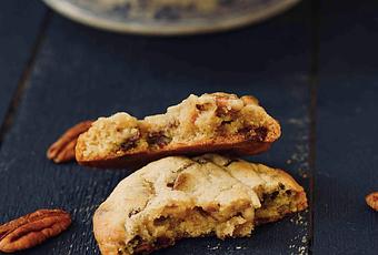 Préchauffez le four à 190°C Dans un saladier ( ou le bol du robot ) versez le beurre , ajoutez les 2 sucres et mélangez à la fourchette pendant 1 minutes , ajoutez l'oeuf et mélangez . Dans un grand bol , mélangez la farine , la levure chimique , le bicarbonate et la maïzena , mélangez le tout et incorporez le à la préparation oeufs/beurre/sucres , vous devez obtenir une pâte homogène et assez dense . En dernier , ajoutez les pépites de chocolat et les noix de pécan concassées . Recouvrez une plaque de four de papier cuisson , déposez 4 boules de pâte , réalisée grossièrement avec les mains . Je les cuits en 2 fournée , avec la préparation vous pouvez faire 8 gros cookies ce qui est plus sympa qu'une douzaine de petits . Surveillez la cuisson pendant 11 minutes , ils seront dorés , ils peuvent rester un peu mous au toucher mais ils vont durcir en refroidissant . Avant de les déposer sur une grille pour qu'ils refroidissent , attendez 5 minutes pour ne les déplacer et ne pas les casser .