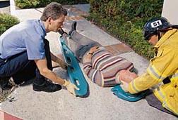 Voici une civière qui se place sous le blessé, sans avoir à soulever ni tourner celui-ci, donc sans risquer de déplacer des vertebres lors du transport. Par ailleurs, le matériau est radio-transparent, et on peut donc prendre des radios dès l'arrivée à l'hopital, là encore sans ancun déplacement.