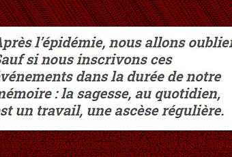 La pandémie ne nous a rien appris de nouveau que nous ne savions déjà sur les dangers liés à la négligence écologique, à l'avidité de la finance, à une mondialisation tournée vers les plaisirs et les profits. Juste que tout cela ne pouvait plus durer ! Il faut à présent une convergence des luttes (pour détourner une formule syndicale) entre l'individuel, le collectif et le politique. Agir d'abord à mon niveau personnel, c'est-à-dire moins consommer, moins voyager et augmenter encore par mes paroles, mes écrits et mes gestes la quantité de bienveillance et d'entraide présentes dans ce monde.