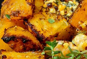 Aujourd’hui, je vous propose des pommes de terre marinées dans du pesto rouge, (à base de tomates séchées et gingembre) rôties au four. Pour plus de saveurs, je les ai enrobées, à la sortie du four, d’un reste de fromage bleu qui traînait dans le frigo.J'ai quelques herbes potagères sur le balcon qui ont pris de l'ampleur depuis le début du confinement, parce que je m'en occupe tous les jours et surtout parce qu'il y a beaucoup, beaucoup moins de pollution : ciboulette, menthe, sauge, verveine, romarin et origan.Si vous ne devez acheter d'une seule herbe, je vous conseille l'origan frais. Il a une très bonne saveur et son goût est totalement différent de l'origan séché.Vous pouvez servir ces pommes de terre rôties au four accompagnées d'une salade verte pour un repas végétarien et en accompagnement d'un viande rouge ou blanche.D'autres recettes de patates rôties ici.Prenez soin de vous et à bientôt.