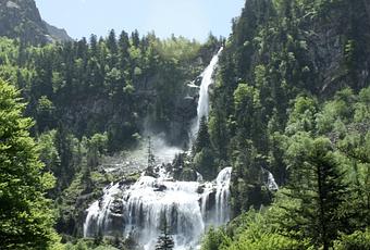 Sûrement l'une des plus belles de France... La cascade de Gavarnie est située en pleine montagne dans les Hautes-Pyrénées dans le Cirque glaciaire de Gavarnie. On l'appelle aussi la Grande Cascade. Elle se jette à plus de 420 mètres de haut, c'est la deuxième plus grande cascade de France après la cascade de la Lyre avec 550m (Haute-Savoie). La chute est tellement haute qu'une partie de l'eau s'évapore avant même d'avoir touché le sol. Un imperméable est conseillé si vous voulez vous en approcher. Un petit sentier traversant le cirque de Gavarnie permet de vous y rendre à pied. C'est un site grandiose, très fréquenté en été.