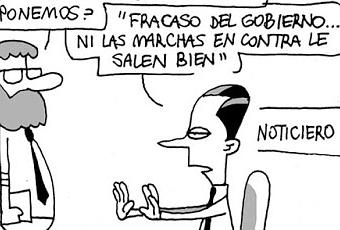 Ce qui a inspiré notre duo d’humoristes de Página/12 et vous avez vu, à travers mes articles ces derniers jours, que la presse dominante, aux mains de grands capitalistes très hostiles à la majorité en place, n’est pas avare en tentatives de déstabilisation et en informations tellement déformées que ça devient de l’infox. Ce qui donne ce matin, avec le sens du raccourci qui caractérise Daniel Paz et son scénariste Rudy :