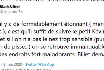 source Billet maintenant. Pouf pouf. Je suis donc à la trace le petit Kévin depuis sa maternelle. C’était ici, in THE Média, journal particulièrement contaminé par le confusionnisme s’il en est, qui nous a gratifié entre autres du relais avec l’extrême-droite qu’est Chouard (qui a pu y dérouler son révisionnisme tranquilou), de la complotiste Lacroix-Riz, de Collon, d’Asselineau, de Polony etc. Et encore en ai-je probablement omis, puisque j’ai négligé depuis bien longtemps maintenant d’observer davantage ce lieu médiatique si désespérément boueux là.