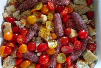 Repartir les saucisses sur le plats en les enfonçant un peu dans les légumes