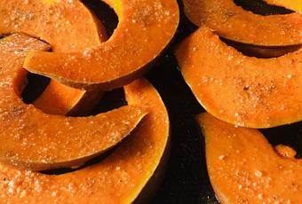 - Découper les tranches de potiron, les étaler sur une plaque.