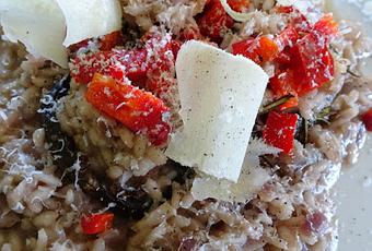 Remplir les champignons de risotto tout en les faisant déborder largement pour remplir les assiettes