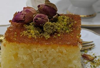 Encore une spécialité moyen-orientale pour une soirée ramadanesque : une basboussa moelleuse, aérienne, parfumée à l’eau de rose, pas trop sucrée.La quantité de sirop est toujours difficile à décider à l’avance, d’autant que cette version de basboussa est tellement légère que le liquide va être absorbé très vite. J’ai opté pour tout mettre et le gâteau était humide comme je le voulais. A vous de voir.N’omettez pas de tourner le gâteau pour répartir de nouveau le sirop dans l’autre sens. Cela donnera une basboussa humide de partout.Je l'ai faite la veille pour le lendemain et elle était divine.La basboussa est un gâteau à base de semoule, d’œufs, de gras, huile ou beurre et de laitage : lait, yaourt ou babeurre (lben).D'autres déclinaisons existent : au lait concentré sucré, au jus d’orange etc.Autres basboussas sur le blog : ici.Je vais essayer d’en tester plusieurs puisque je ne suis qu’à ma troisième.Prenez soin de vous et à bientôt