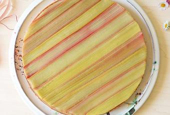 La recette, vous pouvez la trouver dans le livre Sensation de Conticini ou dans mon magasine fétiche Fou de Pâtisserie. Elle est un peu longue mais vous pouvez sans problème zapper la crème pâtissière et faire une crème d’amande toute simple. Préparez votre pâte sucrée et votre compotée de rhubarbe la veille, le jour J vous n’aurez qu’à faire la crème d’amande et les lamelles de rhubarbe.