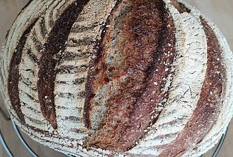 Recette de base : 500 g de T65, 320 g d'eau, 100/120 g de levain*, 10 g de sel