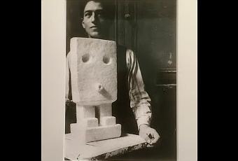 Et pourtant, le plâtre Le Petit Homme (1926-1927) dont la reproduction fait la couverture du catalogue est désormais tout ce qu'il nous reste de l'oeuvre, une photo encadrée, prise par un anonyme au demeurant, et de taille plutôt modeste. Je me suis interrogée sur son actuel succès, imputable à ce qu'on devine de l'oeuvre, ou à la mise en scène du cliché, avec la place si particulière du visage de l'artiste.