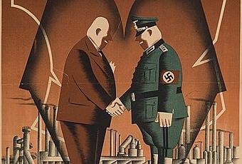 Affiche du PCF accusant les « hommes des trusts » d’avoir collaboré économiquement avec l’occupant nazi – 1945.