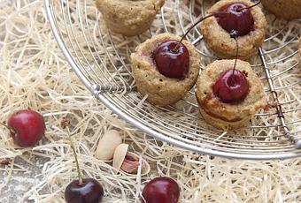 Cette année était partie pour être une année à cerise. Les arbres en étaient couverts, et les fruits rougissaient à vue d'oeil. Et puis la pluie est passée par là, et les cerises ont malheureusement toutes pourri. Moi qui me réjouissait déjà de pouvoir faire des chutneys, des tartes et des cerises au vinaigre, je me suis retrouvée bien marrie... Heureusement, j'ai réussi à en sauver quelques-unes, pour réaliser cette recette de moelleux qui me trottait dans la tête depuis que j'ai acheté ma purée de pistache. Outre l'accord visuel entre le vert de la pistache et le rouge des cerises, le mariage pistache-cerise est aussi une réussite gustative. D'ailleurs, j'aurai aussi voulu tenter un clafoutis pistache-cerise mais là clairement, je n'avais pas assez de cerises !