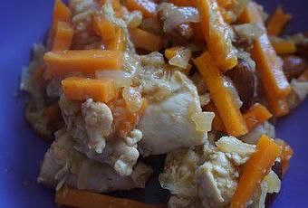 poulet, oignon, carotte sauce soja, vinaigre de cidre, amandesNOUVEAU !