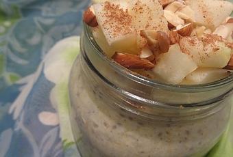 4. In the morning, mix again, top with diced apple and a pinch of cinnamon.