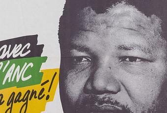 Producteur : Parti communiste français (PCF) – Affiche photographique, couleur, 97,5 x 68,5 cm – Mandela enfin libre. Avec l’ANC, on a gagné ! Et maintenant des élections libres en Afrique du Sud !