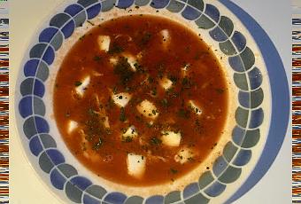 Deux cuillères à soupe d’huile, un petit oignon, une gousse d’ail écrasée, une boîte de 200 g de sauce tomate, 1 litre de bouillon de volaille, 150 g de fromage genre mozzarella, un citron vert coupé en 4, un piment sec Pasilla, du sel et du poivre et un sachet de nachos (des tortillas chips comme on dit en France).