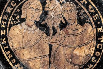 Pierre et Paul (assis) sous une couronne, British Museum, 3ème au 5ème siècle, Cologne.