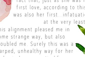 "Nous nous fixions du regard pendant quelques instants, alors que j'intégrais le fait que, puisqu'elle était mon premier amour, selon ces faits j'étais aussi tout du moins son premier coup de coeur. Cette position me plaisait d'une manière assez étrange, mais cela me perturbait aussi. C'était sûrement une manière détournée et malsaine pour elle de lancer sa vie amoureuse"