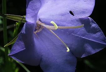 Campanula persicifolia (Campanule à feuilles de pêcher) : herbacée vivace ; feuilles étroites, les inférieures spatulées, les supérieures sessiles ; fleurs peu nombreuses, corolle bleue de grande taille, aussi large que longue, divisée au 1/4 de sa longueur, 5 étamines, 3-5 stigmates allongés et recourbés vers l'extérieur.