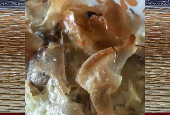 - 10 feuilles de pâte filo (au moins 5). J'en ai mis 6 plus 1 sur le dessus