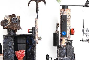 La galerie des Barges, à l’entrée du Port à l’Anglais, à Vitry-sur-Seine (94) accueille une exposition des oeuvres d’Alain Heurtier. L’artiste est présent tous les jours de l’exposition qui est visible jusqu’au 20 juin. Et ça vaut le détour ! Des livres uniques, réalisés pour des amis ou à diverses occasions, qu’on peut manipuler soi-même : carton, écorces, feuilles, objets, textes de l’artiste ou citations, de quoi aiguiser ma curiosité. Mais reprenons depuis le début : les vaches, qu’il nomme les bienveillantes ; des portraits, dont certains sont des portraits de portraits. Les bienveillantes au jardin d’Eden, aux jardins car Alain ne se contente pas d’un seul mythe, d’une seule origine. Les jardins où pousse le figuier de la connaissance, sont faits pour qu’on s’y perde, pour qu’on y joue, pour qu’on y trouve la clé, le message caché. Les matériaux modestes et les mots simples.