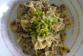 Il me restait des champignons de Paris d'une autre recette, donc je suis partie à la recherche d'une recette pour les terminer et j'ai choisi cette recette de farfalle de Jamie Oliver. En plus après la préparation de cette recette il me restait encore de la duxelle de champignons que j'ai mise au congélateur pour une utilisation ultérieure.