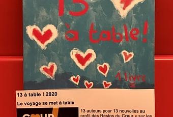 13 auteurs pour 13 nouvelles au profit des Restos du Cœur « sur les routes de la vie, de l’entraide et de la solidarité auprès des personnes les plus démunies ». Du talent, des surprises et une occasion de faire plaisir en découvrant ces plumes ardentes qui ne demandent qu’à aider. Une belle initiative !