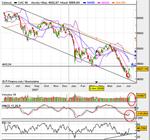 En effet, le rebond semble bien en place maintenant, notamment avec un pic de volumes aujourd'hui, plutôt de bonne augure. Quasi 11 milliards d'€ échangés sur la journée pour une moyenne à 5. Autant dire que les indicateurs sont tous au vert et la tendance à court terme est clairement haussière. La macd repasse au-dessus de son signal d'achat et le rsi est tout à fait sain. La moyenne mobile 20 jours en rose est franchie et le ton semble maintenant donné vers une ascension sur 4415 pts qui constituera un premier test puis 4500 pts qui validera la reprise des bulls ou un simple rebond technique. Il est important en effet de garder à l'esprit que cette hausse laisse un gap haussier derrière nous à 4116 pts qui risque d'attirer le amrché à un moment ou à un autre vers le bas pour le refermer. Le rebond fait du bien mais il est important de garder à l'esprit qu'a long terme le CAC 40 demeure dans un canal baissier.