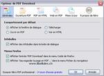 Pour mémoire cette extension permet de paramétrer avec soin l'actin par défaut lorsqu'on clique sur un lien pointant vers un fichier PDF. Il faut souvent attendre de télécharger l'intégralité du document avant de commencer à l'afficher autrement. L'extension PDF download pour Firefox affiche cette fenêtre lorsqu'on clique sur un lien pdf, vous pourrez télécharger le fichier (sans avoir à passer par le clic droit, "enregistrer la cible du lien sous"...) ou l'ouvrir dans un onglet, ou même le convertir en html, cette fonction a fait de gros progrès :