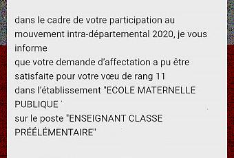 Je quitte avec beaucoup de regrets ma classe dans laquelle je me sentais si bien et mes collègues dont certaines que j'appelle désormais amies. J'ai beaucoup pleuré hier, aujourd'hui encore.