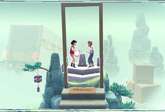 Il n’y a pas de dialogue dans The Gardens Between, mais je vous conseille tout de même de jouer avec le son car la bande originale de Tim Shiel est vraiment excellente. Cette absence de voix n’est pas du tout gênante car une cinématique d’introduction met en place rapidement le lien entre les personnages, et entre chaque chapitre vous avez une image animée qui rajoute un peu plus à leur relation.