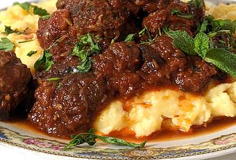Aujourd’hui, je vous propose des boulettes de viande enrobées de graines de fenouil (qui leur donnent une saveur extraordinaire) cuites dans une sauce tomates à l’aubergine, le tout posé délicatement sur un lit de polenta au parmesan.