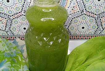 1- Placer le concombre, l'eau, le jus de citron, le miel, le gingembre et les feuilles de menthe dans un mélangeur. Réduire en purée, passer au tamis.